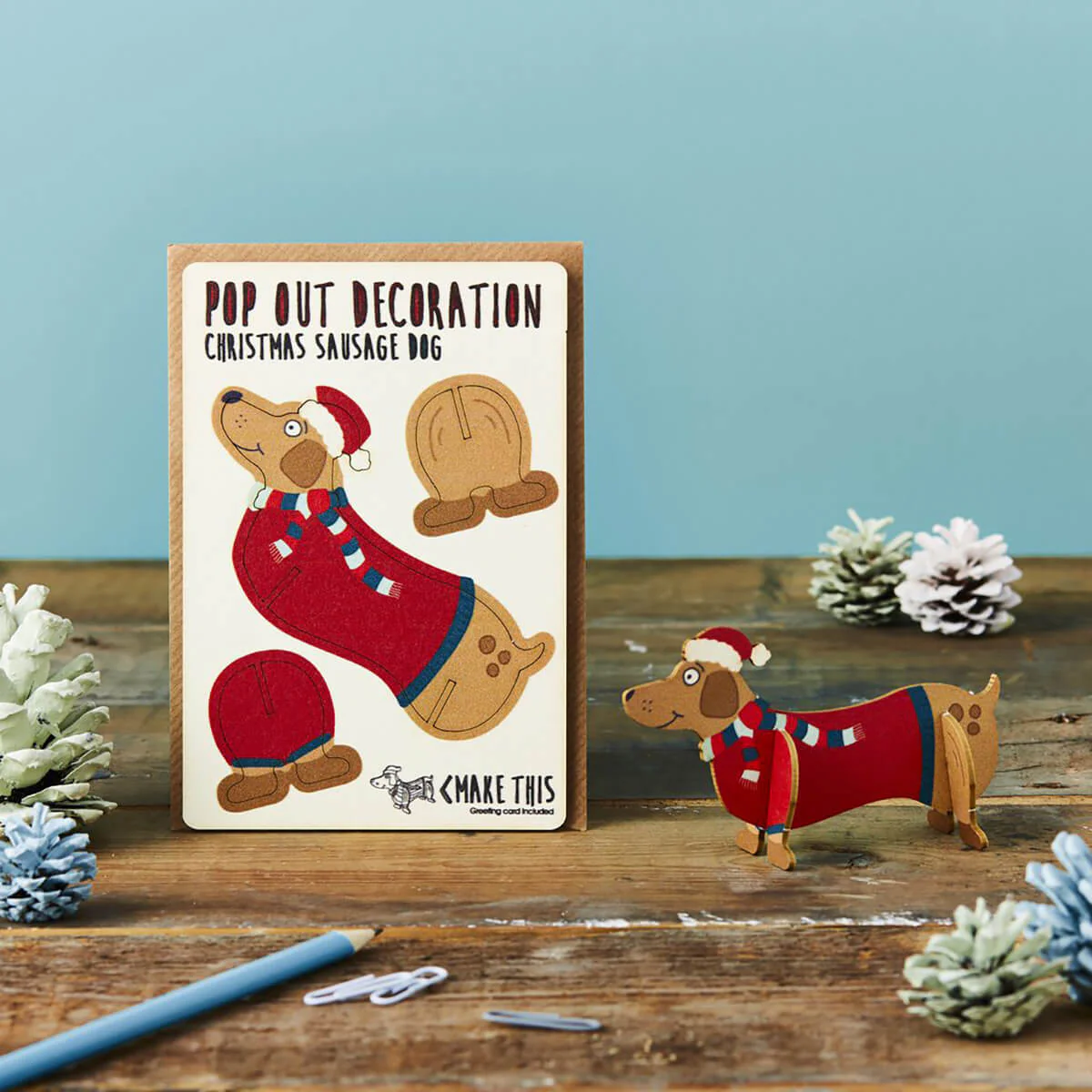 Christmas Sausage Dog Pop Out Decoration And Christmas Card by The Pop Out Card Company