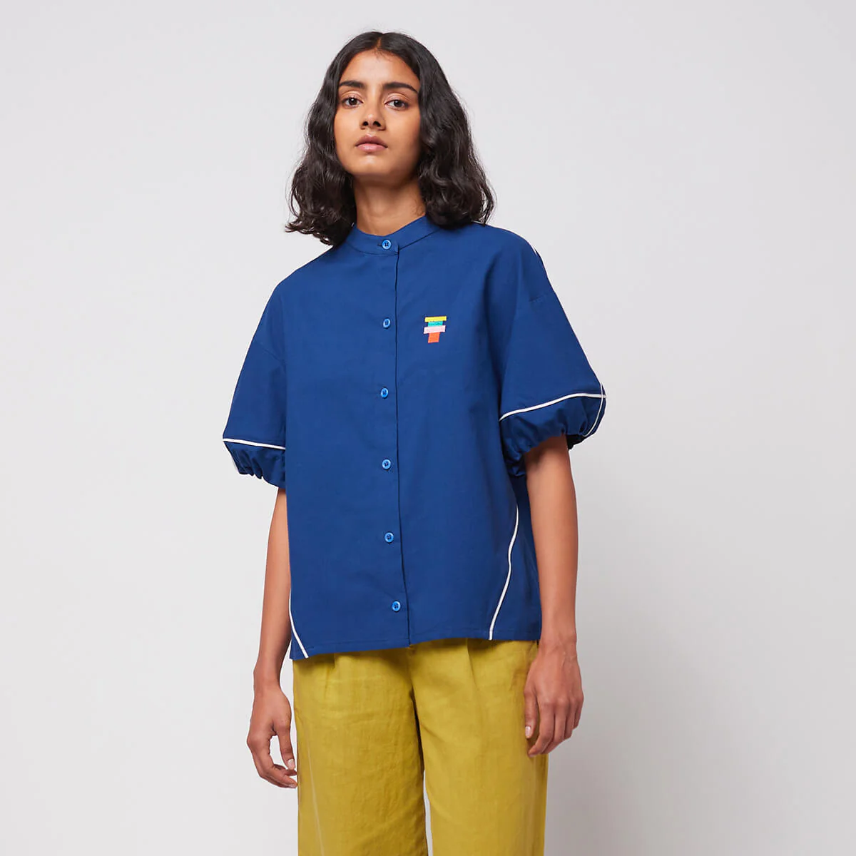 Contrast Trim Puff Sleeve Shirt by Bobo Choses Womenswear